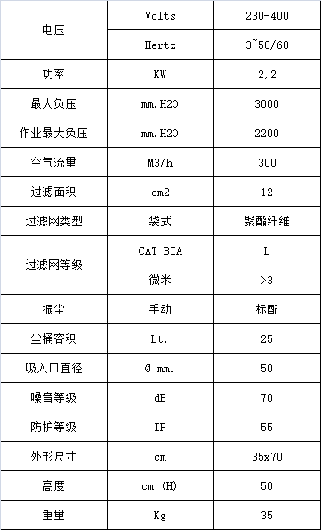 吸塵系統配備1個旁路渦輪風機,風扇直聯在渦輪電機軸上,轉速2850RPM,勿需任何傳動裝置,完全免維護,適合24小時連續作業,非常安靜,幾乎無噪音;電機防護等級IP55。