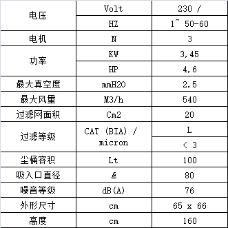 星形聚酯纖維過濾網(wǎng)裝在鋼制過濾艙中,過濾面積20000 cm2,過濾精度 高達3微米 L級別。手動振塵器通過上下垂直搖動能夠振落附著在濾網(wǎng)上的大部分灰塵,有效清潔過濾網(wǎng)從而保持正常的吸塵功效和延長濾網(wǎng)使用壽命。模壓鋁制吸塵口直徑為Ø80 mm,位于過濾網(wǎng)下面,能夠同時吸塵、吸固體和吸水(水量不得超過塵桶容量),無需更換或取出過濾網(wǎng)。