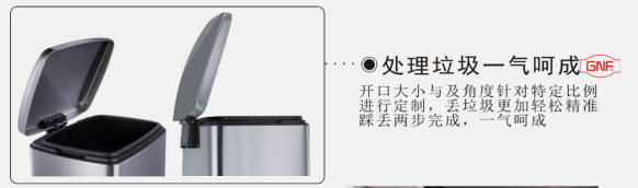【功能和性能】垃圾分類。具有色澤亮麗美觀,并具有環保、防潮、防腐防銹、易清理、靜音緩降、密封防臭等特點。