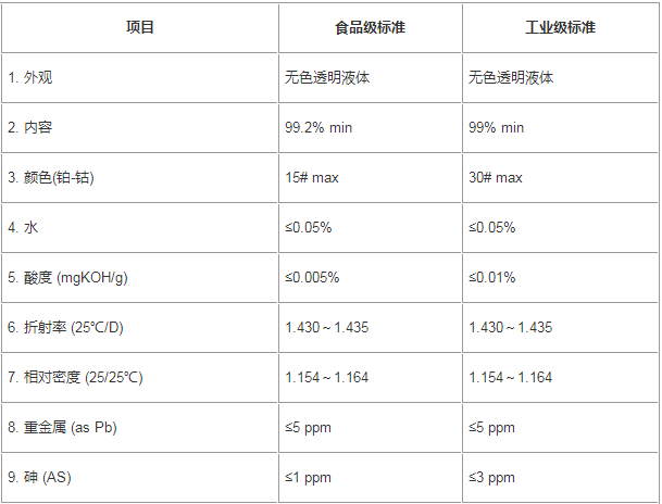 用途:本品主要用作香煙過(guò)濾嘴用醋纖嘴棒的增塑劑;香料、香精的固定香劑;化妝品制造、食用膠基制品制造、特殊溶劑及食品塑膠制品的無(wú)毒增塑劑。鑄造樹(shù)脂用固化劑。